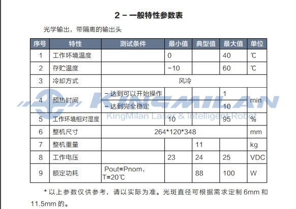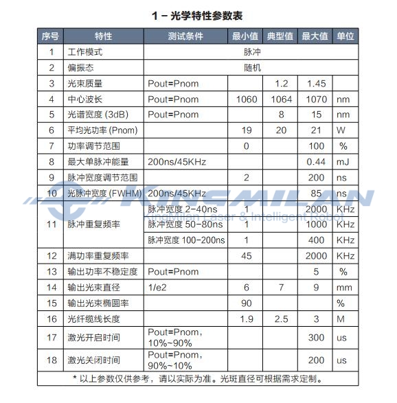 1、激光器光學(xué)特性參數(shù)表